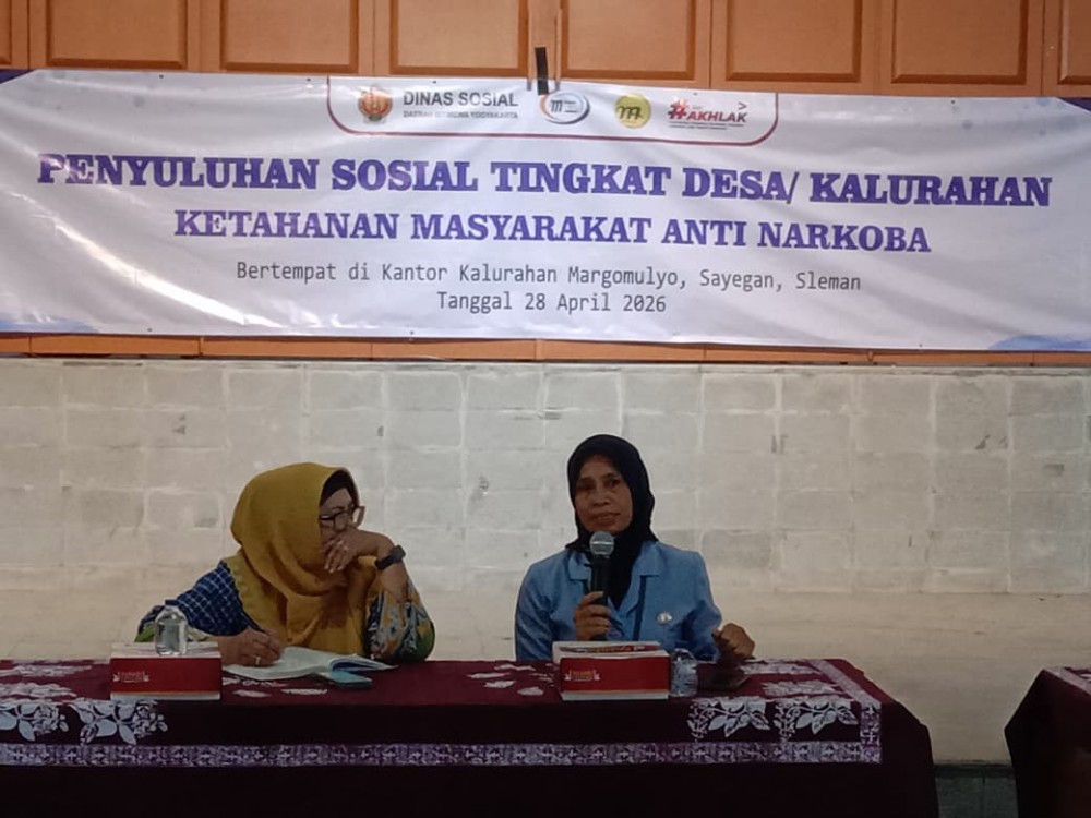 SEYEGAN - Mengusung tema “Ketahanan Masyarakat Anti Narkoba”, Dinas Sosial Daerah Istimewa Yogyakarta menggelar kegiatan Penyuluhan Sosial Tingkat Kalurahan tahun 2026 di Kalurahan Margomulyo, Kapanewon Seyegan, Selasa (28/4/2026). Kalurahan ini dipilih karena dinilai masih menghadapi berbagai persoalan sosial yang cukup kompleks dibanding wilayah lainnya.